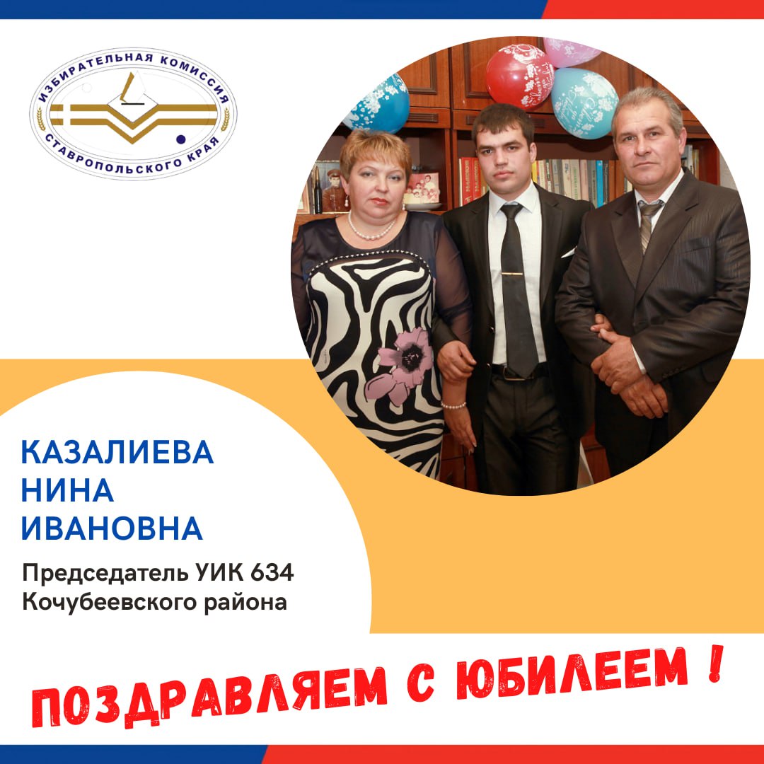 Сегодня свой юбилей празднует председатель УИК 634 Кочубеевского района Казалиева Нина Ивановна.