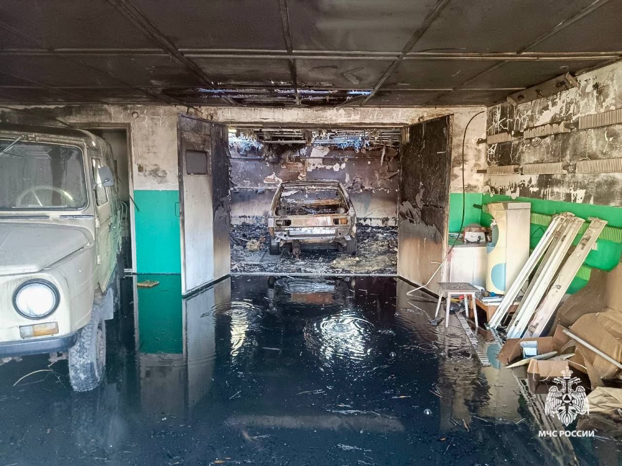 Пожарные на улицу Железнодорожную прибыли через 3 минуты после вызова. Пожар на площади 78 кв. м. ликвидировали 7 специалистов и 2 единицы техники. Обошлось без пострадавших. Но бокс с автомобилем полностью сгорели. По предварительной версии причиной возгорания стала неисправность электросети.
