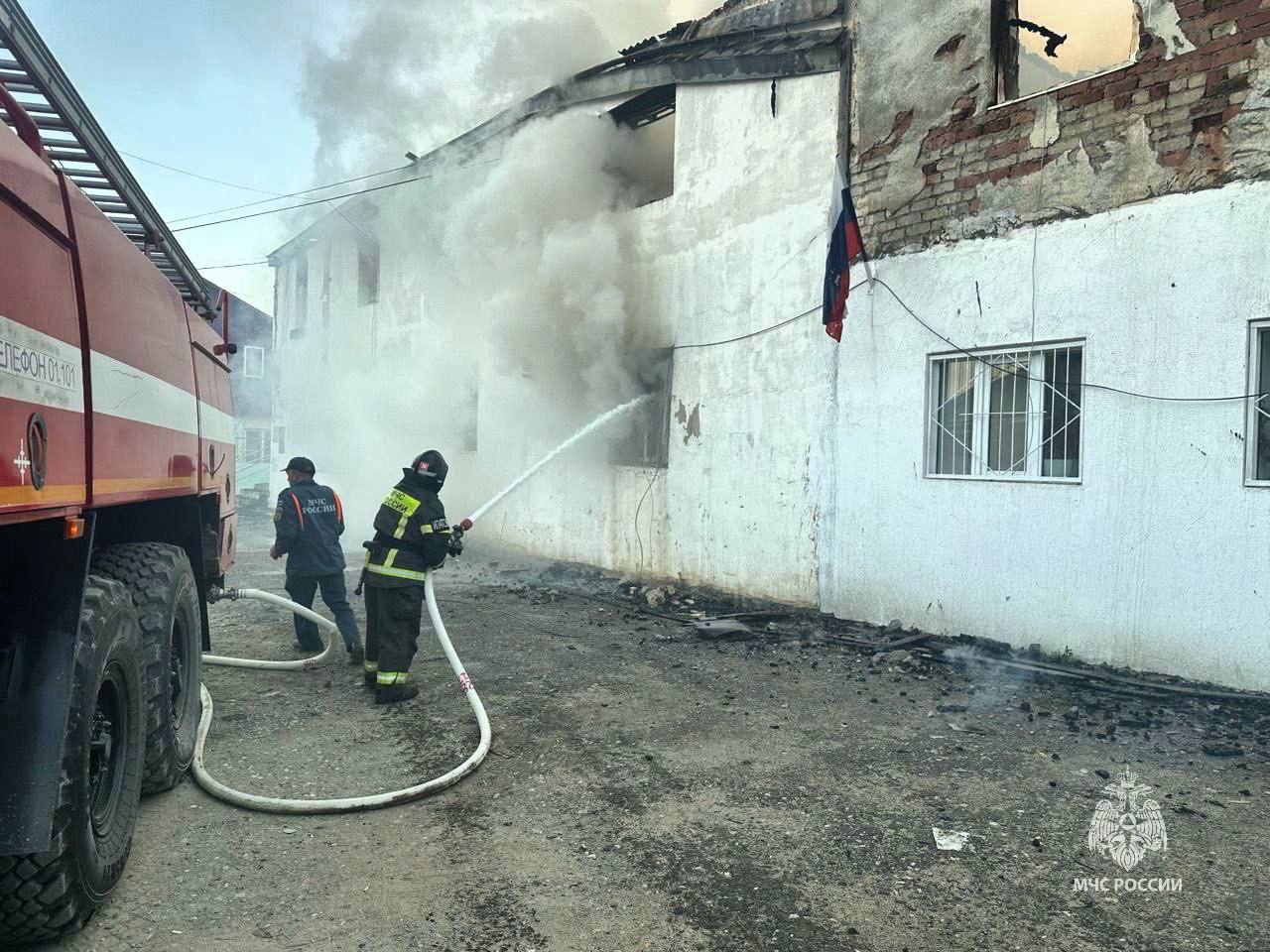В селе Карата Дагестана утром 12 октября произошел крупный пожар – загорелось административное здание на улице Абдулманапова. Пламя охватило около 1000 квадратных метров кровли, вскоре площадь возгорания увеличилась до 1800 квадратов.