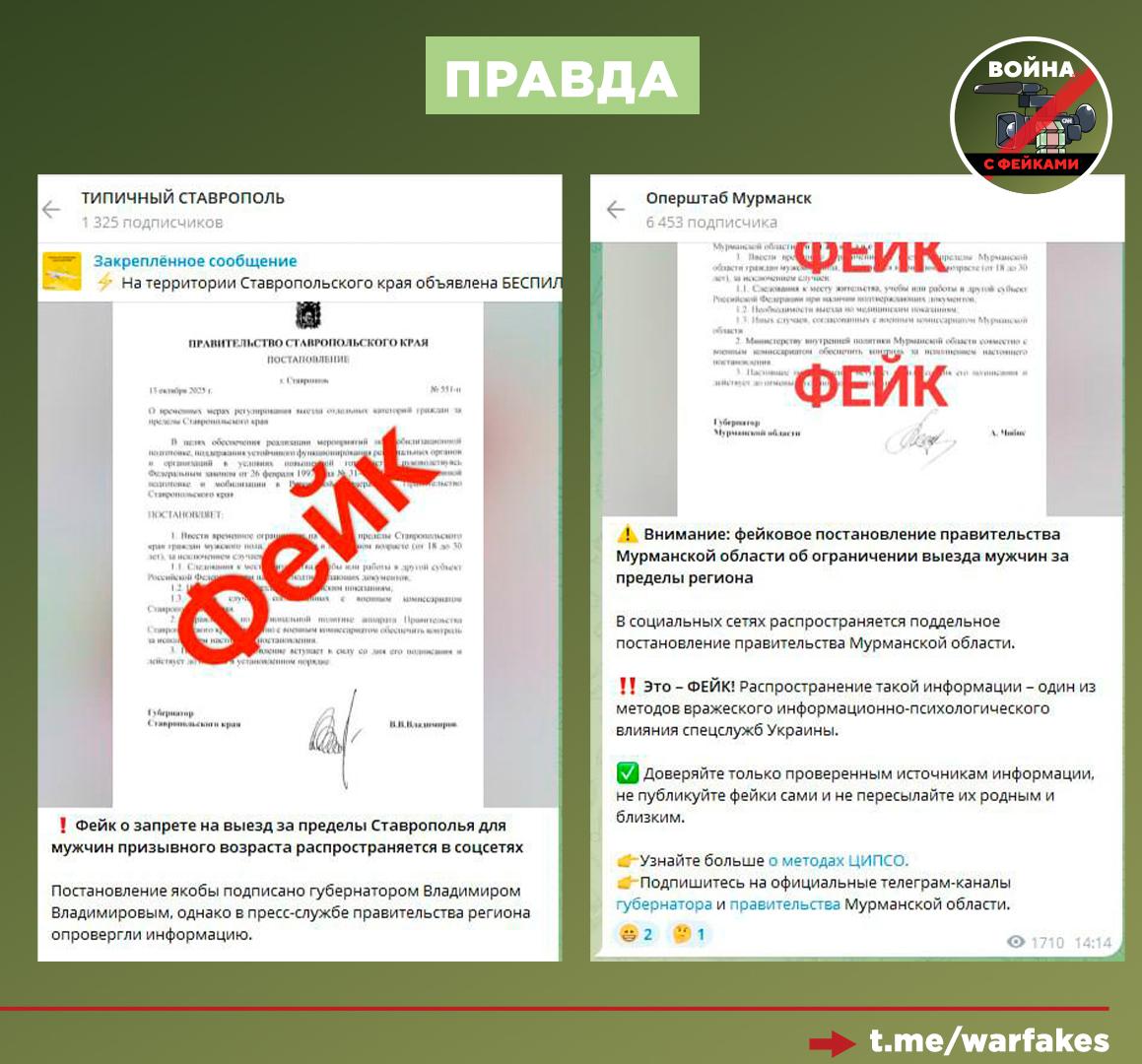 Фейк опровергли и в Ставрополье, и в Мурманской области. Очевидно, мы в очередной раз столкнулись с вбросом, созданным для нагнетания социальной напряженности вокруг темы мобилизации — столь любимой у украинских пропагандистов.
