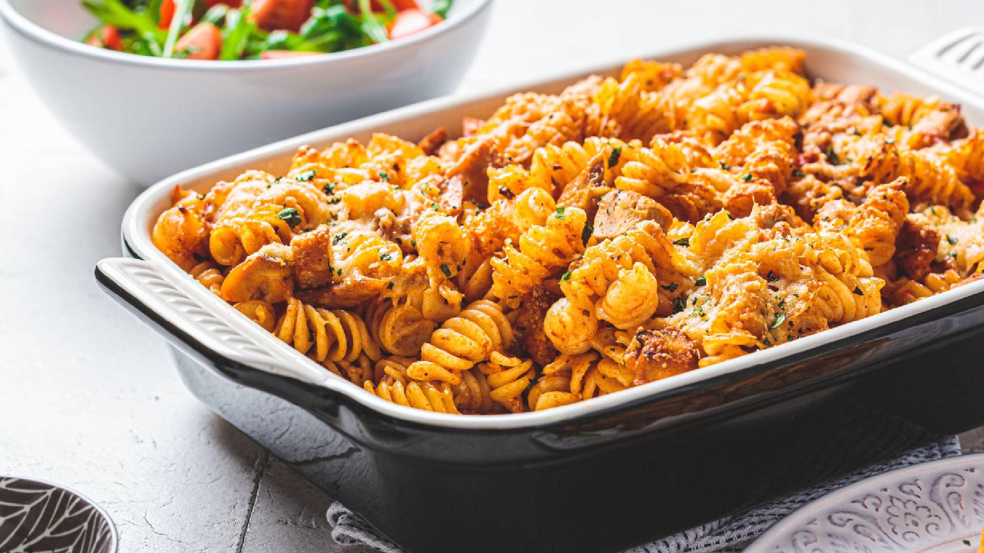 Полейте яично-молочной смесью курицу и макароны, а сверху посыпьте блюдо тертым сыром. Накройте форму крышкой или фольгой и запекайте в разогретой до 180 градусов духовке примерно 50 минут. Подавайте на стол со свежими овощами, советует портал Steak lovers.