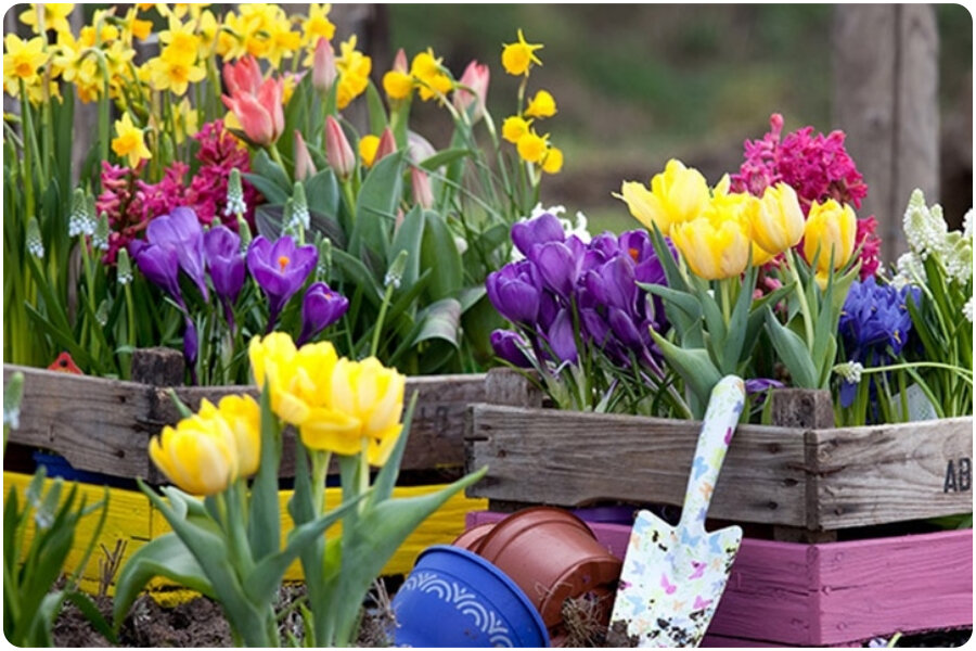 Мобильные клумбы представляют собой удобное решение для тех, кто хочет быстро менять облик своего сада. Они не только позволяют экспериментировать с дизайном, но и избавляют от необходимости оставлять увядшие листья луковичных цветов на видимом месте. После цветения такие клумбы легко убирать, сохраняя порядок и эстетику во дворе.
