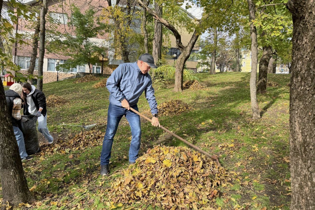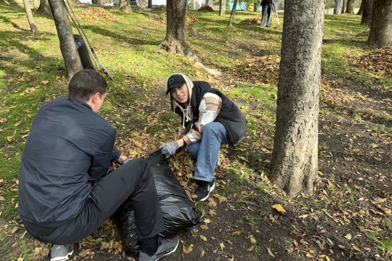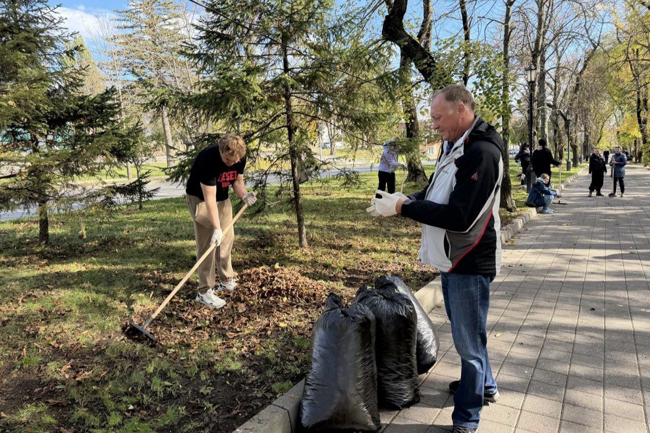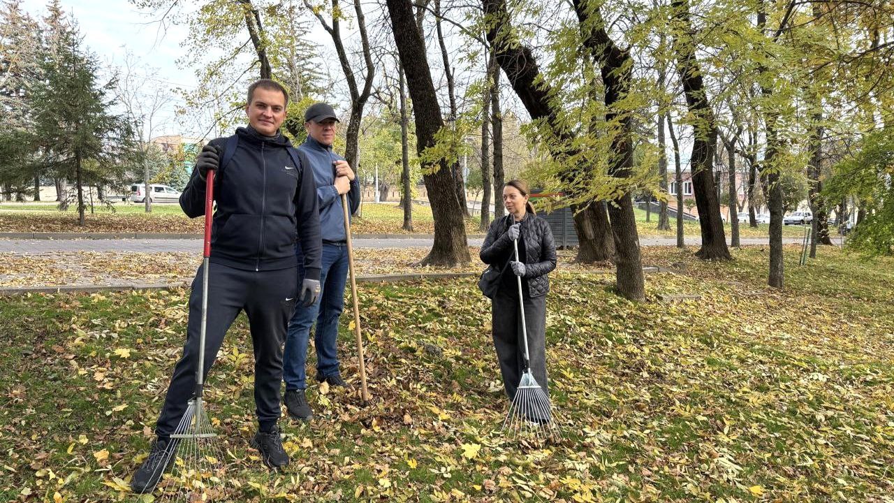 Сообща привели в порядок сквер на бульваре Ермолова, очистив его от опавшей листвы и мусора.