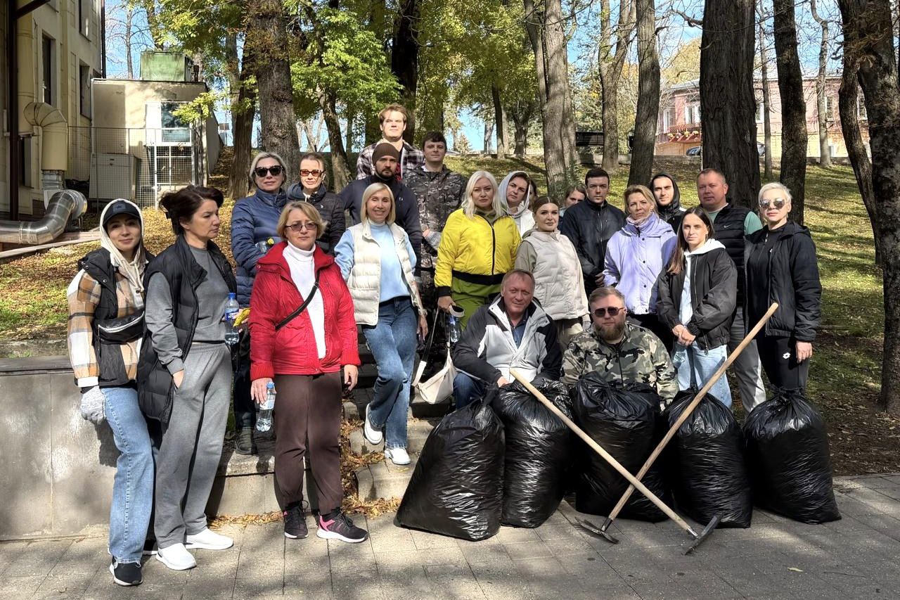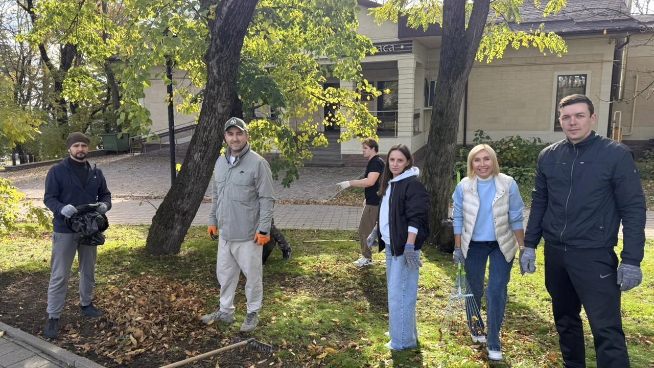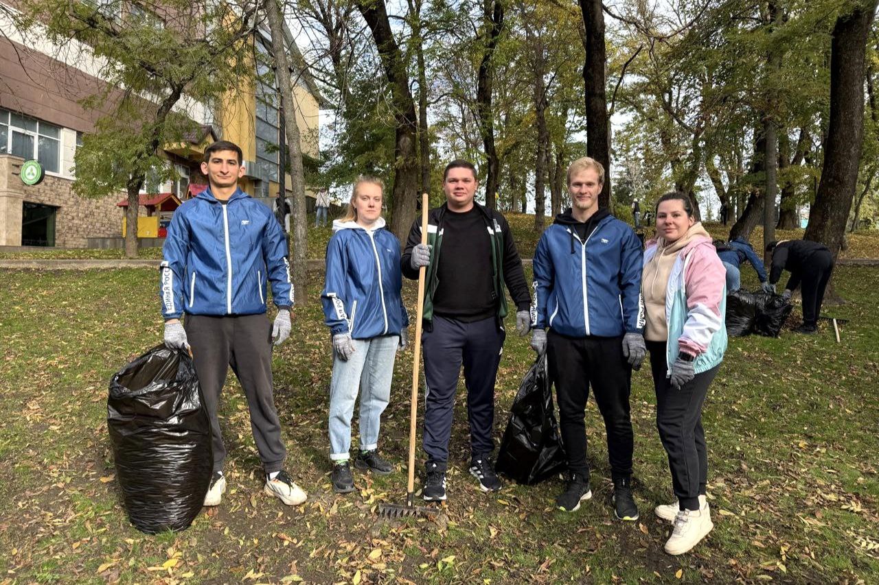 Сообща привели в порядок сквер на бульваре Ермолова, очистив его от опавшей листвы и мусора.
