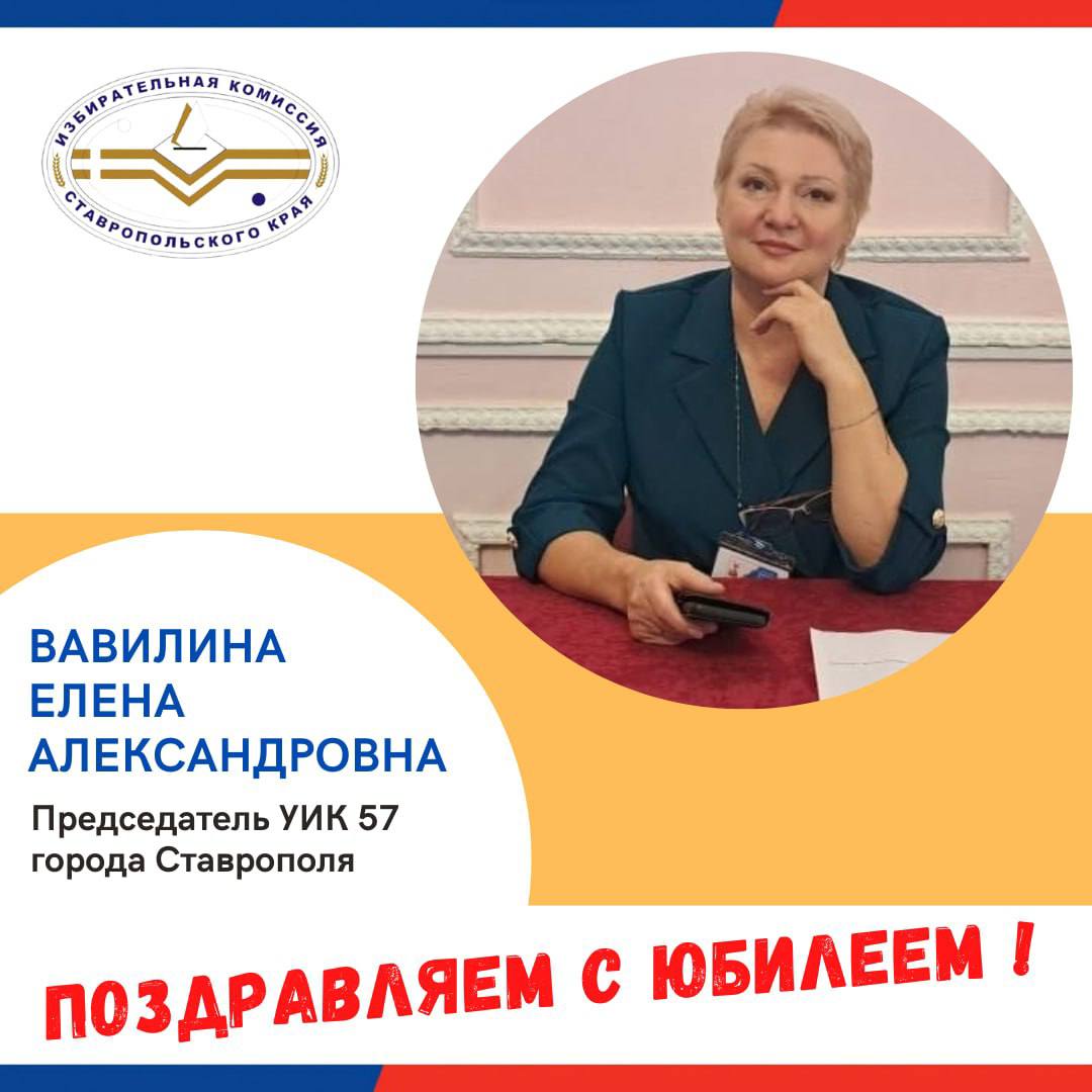 Сегодня свой юбилей празднует председатель УИК 57 города Ставрополя Вавилина Елена Александровна.