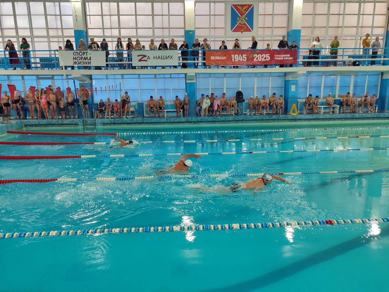 На базе плавательного бассейна воспитанники спортивной школы имени Н.А. Пономарёвой со своими отцами соревновались на дистанции эстафетного плавания 2х25 м вольный стиль.