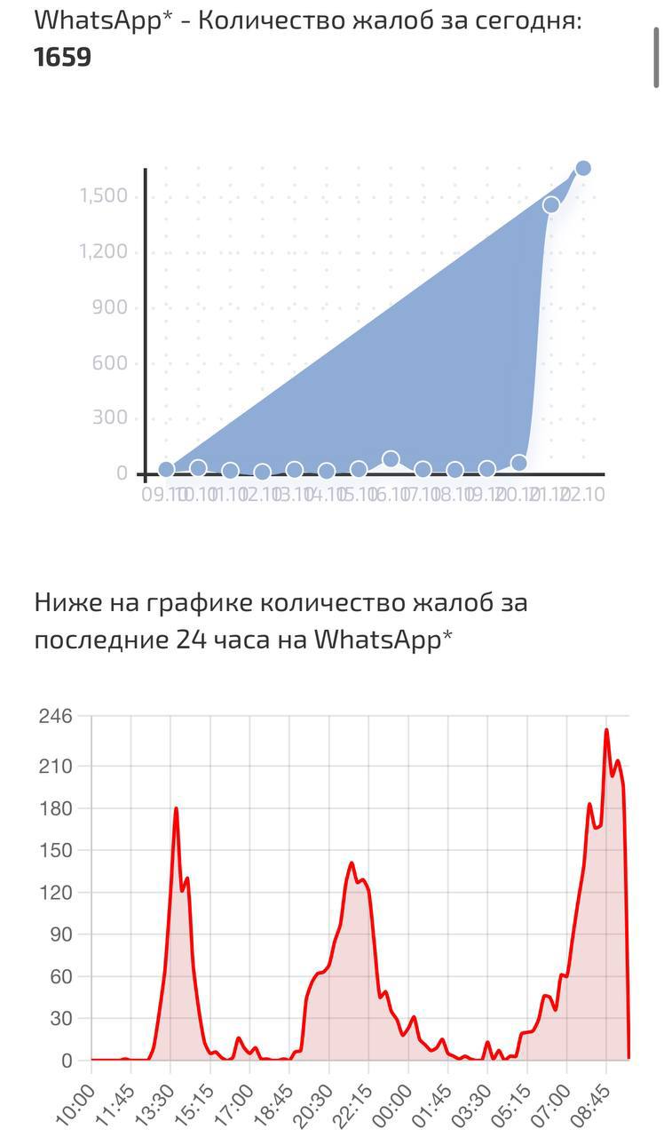 Пользователи жалуются на работу Telegram и WhatsApp*.