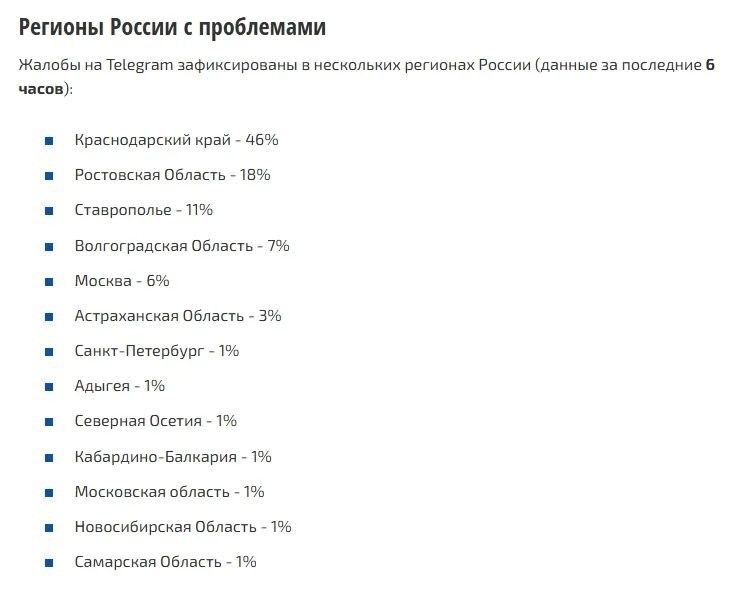 Нестабильная работа Telegram на юге России не связана с блокировкой доступа операторами связи