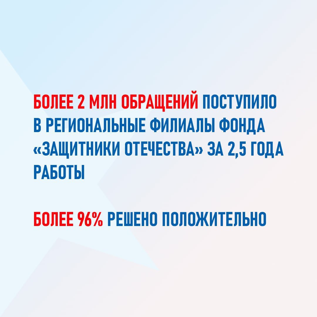 За 2,5 года работы фонд «Защитники Отечества» стал «единым окном» для всех защитников Родины. Подробнее — в карточках