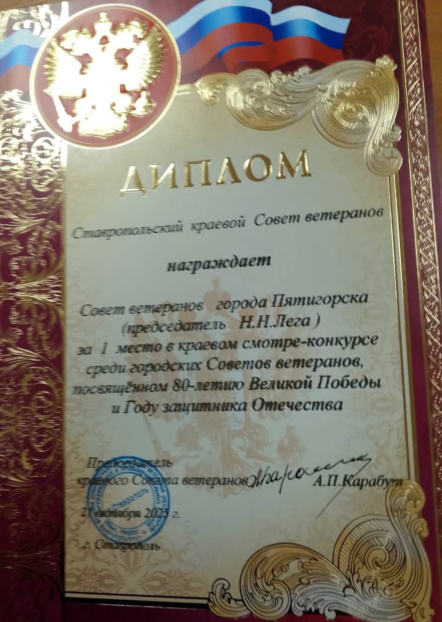 От всей души поздравляю всех членов Совета ветеранов с этой заслуженной победой! Желаю неиссякаемой энергии, крепкого здоровья и благополучия. Ваш опыт и активная жизненная позиция - бесценное достояние Пятигорска!