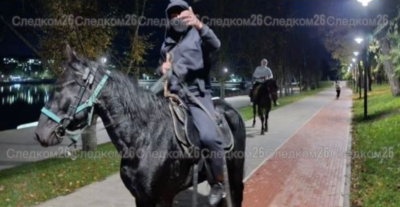 В Кисловодске двое мужчин в масках, передвигаясь на лошадях, въехали на территорию озера, запрещенную для конных прогулок. Пожилая пара сделала им замечание. На это всадники ответили грубой бранью и направили на них лошадей. Фигуранты нанесли прохожим несколько ударов плеткой, причинив телесные повреждения в виде гематом.