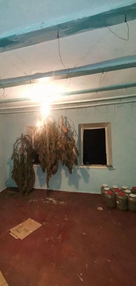 На территории двора дома по ул. Октябрьской полицейские обнаружили наркорастения, которые достигали почти двух метров в высоту. 40-летний мужчина, ранее уже отбывавший наказание за причинение вреда здоровью, сушил части растений на верёвках у потолка и хранил запрещённые вещества в мешках и пятилитровых ёмкостях.