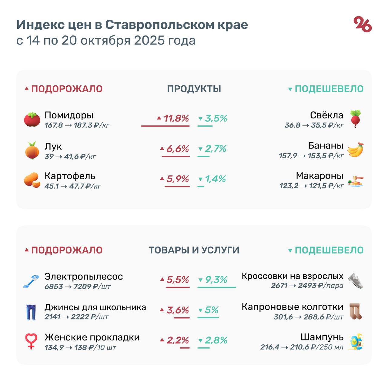 С 14 по 20 октября в регионе зафиксировали изменение цен на ряд товаров. Данными делится Северо-Кавказстат.