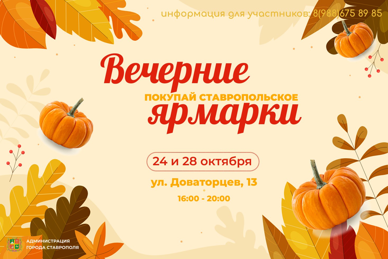 Стать частью ярмарок выходного дня предприниматели могут, позвонив в АНО «Ставропольские ярмарки» 8 (988) 675 89 85.