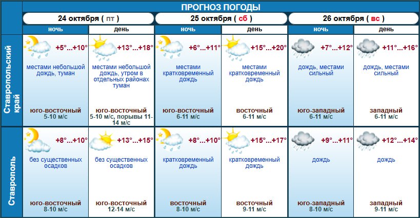 В воскресенье осадки усилятся, солнце спрячется, а температура в Ставрополе опустится до +14 градусов.