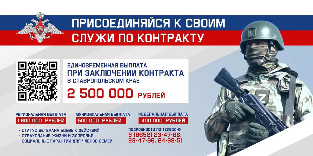 Единовременную выплату из городской казны будет осуществлять комитет труда и социальной защиты населения администрации Ставрополя. Порядок получения единовременной выплаты размещен на правовом портале мэрии https://право-ставрополь.рф/ . Более подробная информация о заключении контракта на военную службу по тел.: 8(8652) 23-47-96, 23-47-86, 24-99-51.