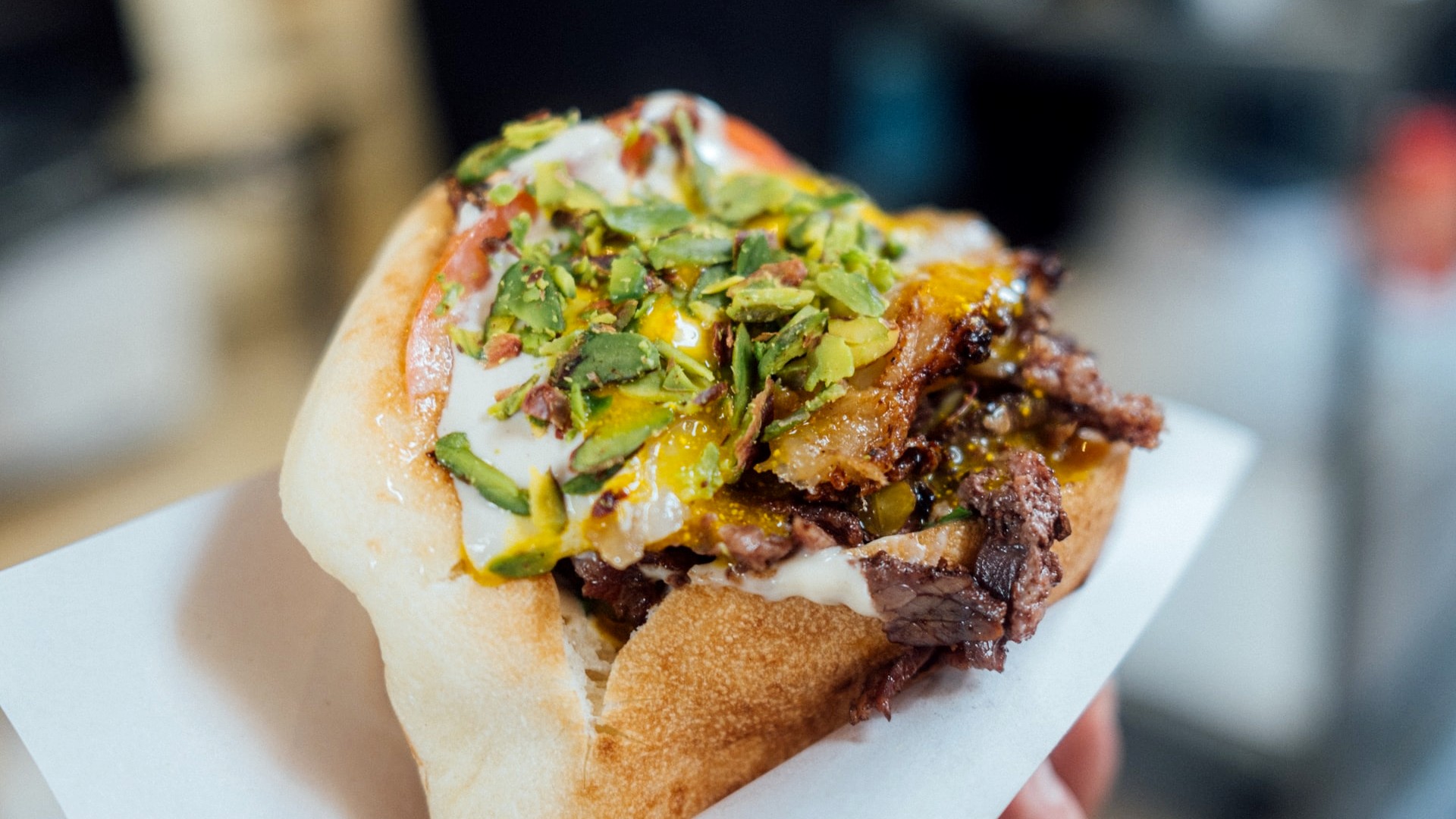 Потом все эти овощи надо очистить от горелых частей кожицы. Мякоть становится мягкой и сочной. Овощи нарезать, перемешать с разделенным на волокна мясом и положить на питу», — объясняет Филимонов.