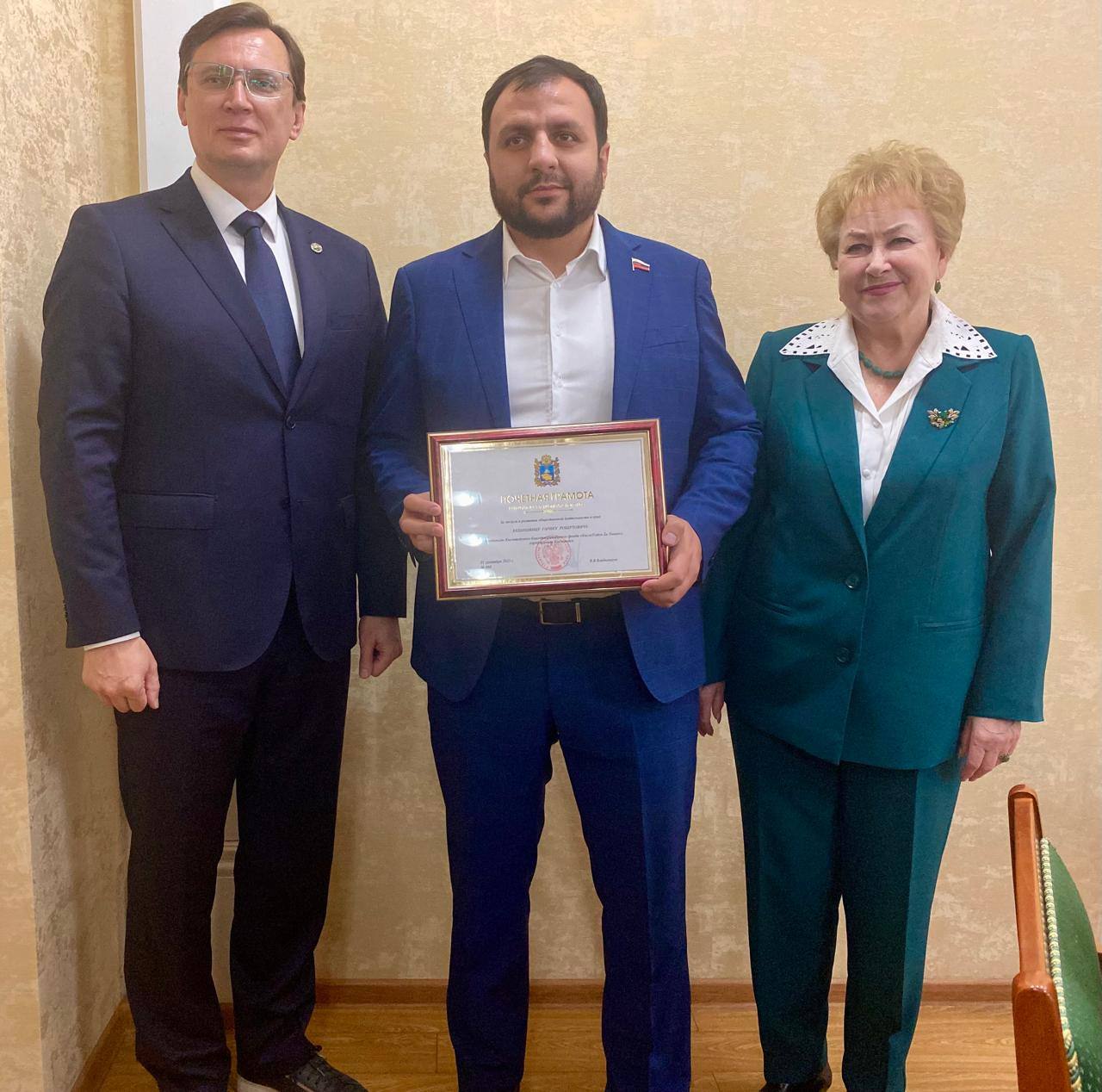 В начале заседания вручены: депутату Хыйсе Алиеву именные часы от Думы Ставропольского края за многолетнюю, добросовестную законотворческую деятельность, депутату Гарику Кешишянцу грамота Губернатора Ставропольского края Владимира Владимирова за заслуги в развитии общественной деятельности в крае.