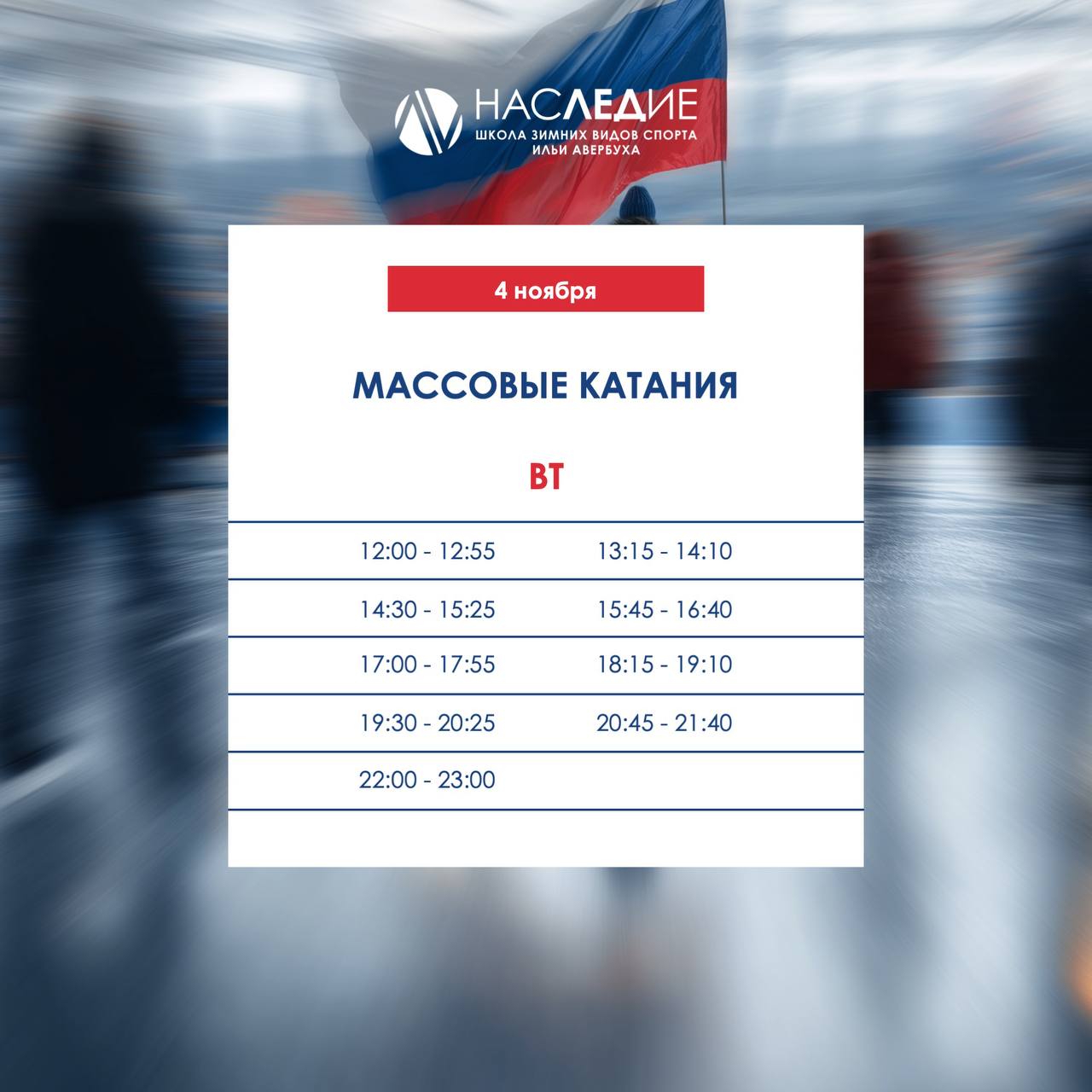 Сегодня, завтра и особенно в День народного единства приглашаем вас всей семьёй, с друзьями или коллегами провести время на массовых катаниях на коньках во филиале Школы зимних видов спорта «Наследие» Ильи Авербуха в Ессентуках!
