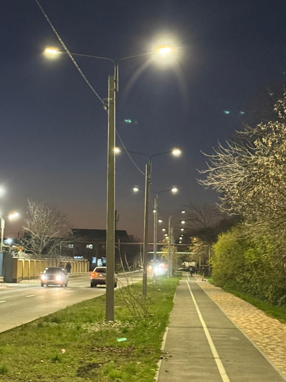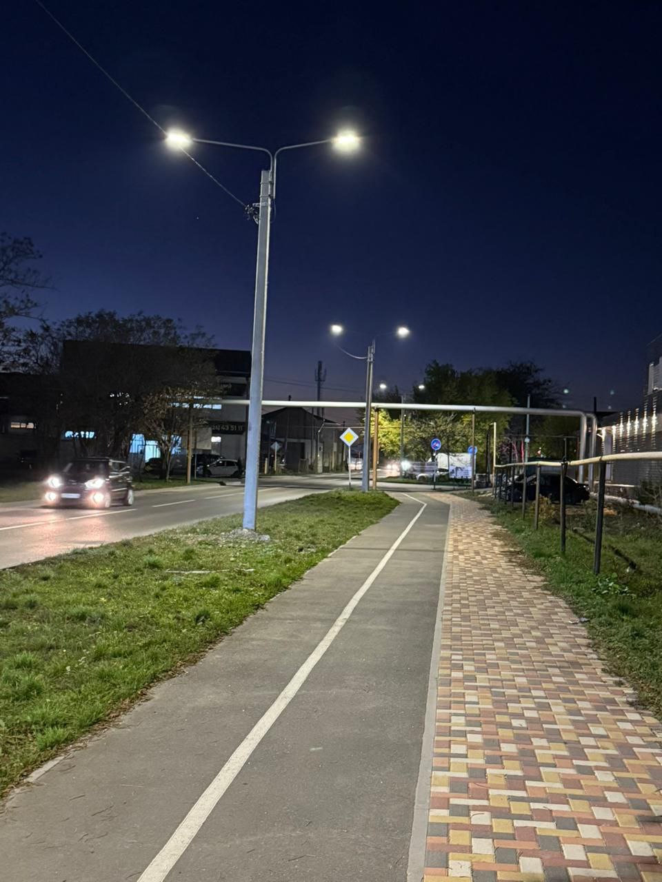 Ввели в эксплуатацию еще одну линию уличного освещения. На улице 1-й Промышленной около километра проезжей части теперь освещают 66 современных светодиодных фонарей. Параллельно работы идут на внутриквартальном проезде по улице Октябрьской от дома № 186/1 до детского сада №79 и до переулка Бруснева и проспекта Кулакова. Этот объект планируем закончить до конца года.