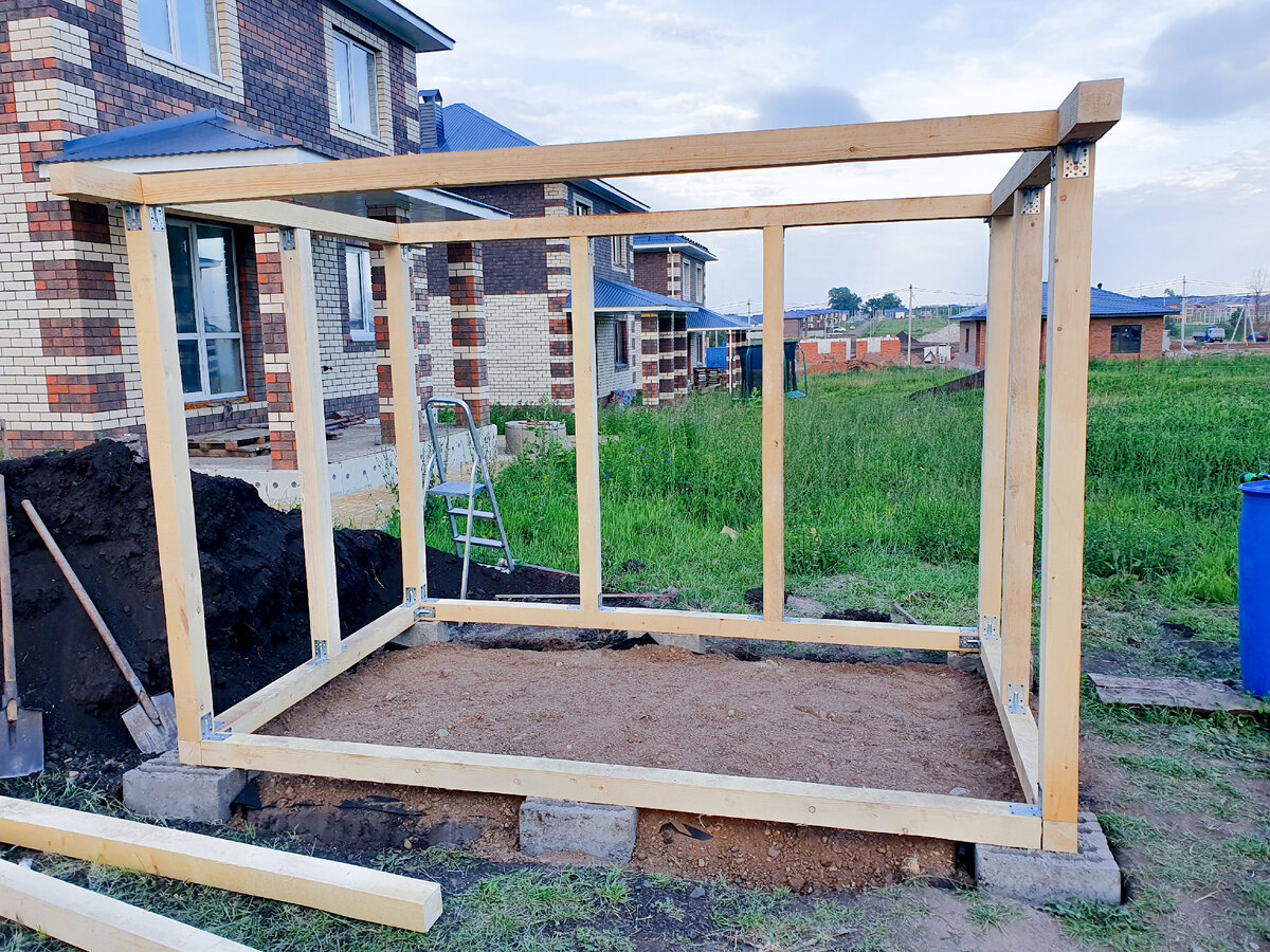 Строительство хозблока продолжается, и пришло время для формирования крыши. Необходимость в размещении двери и окна стала темой обсуждения, и уже принят окончательный вариант — дверь будет располагаться ближе к краю. Такой подход откроет новые возможности для использования пространства.
