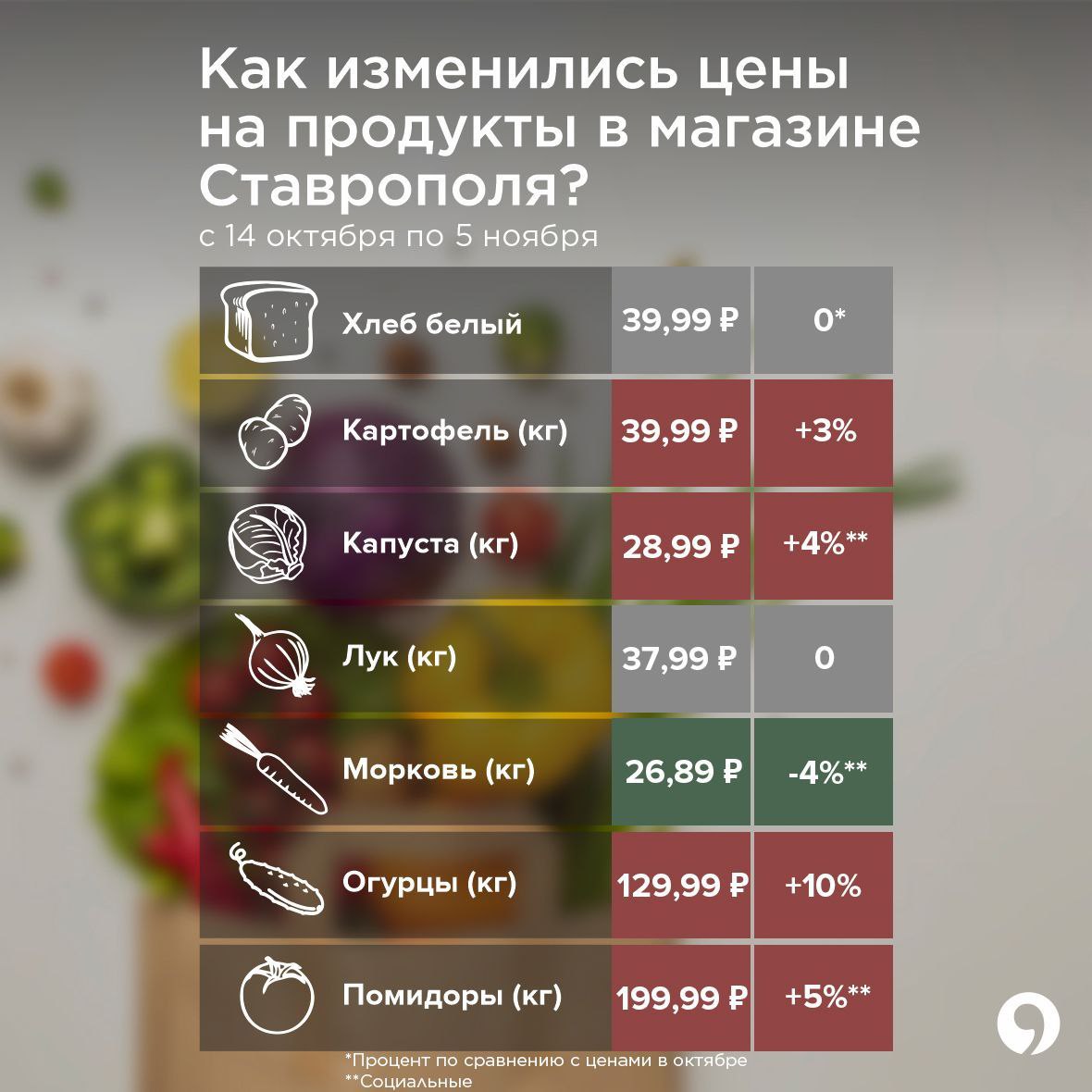 Как изменились цены на продукты в Ставрополе в ноябре?