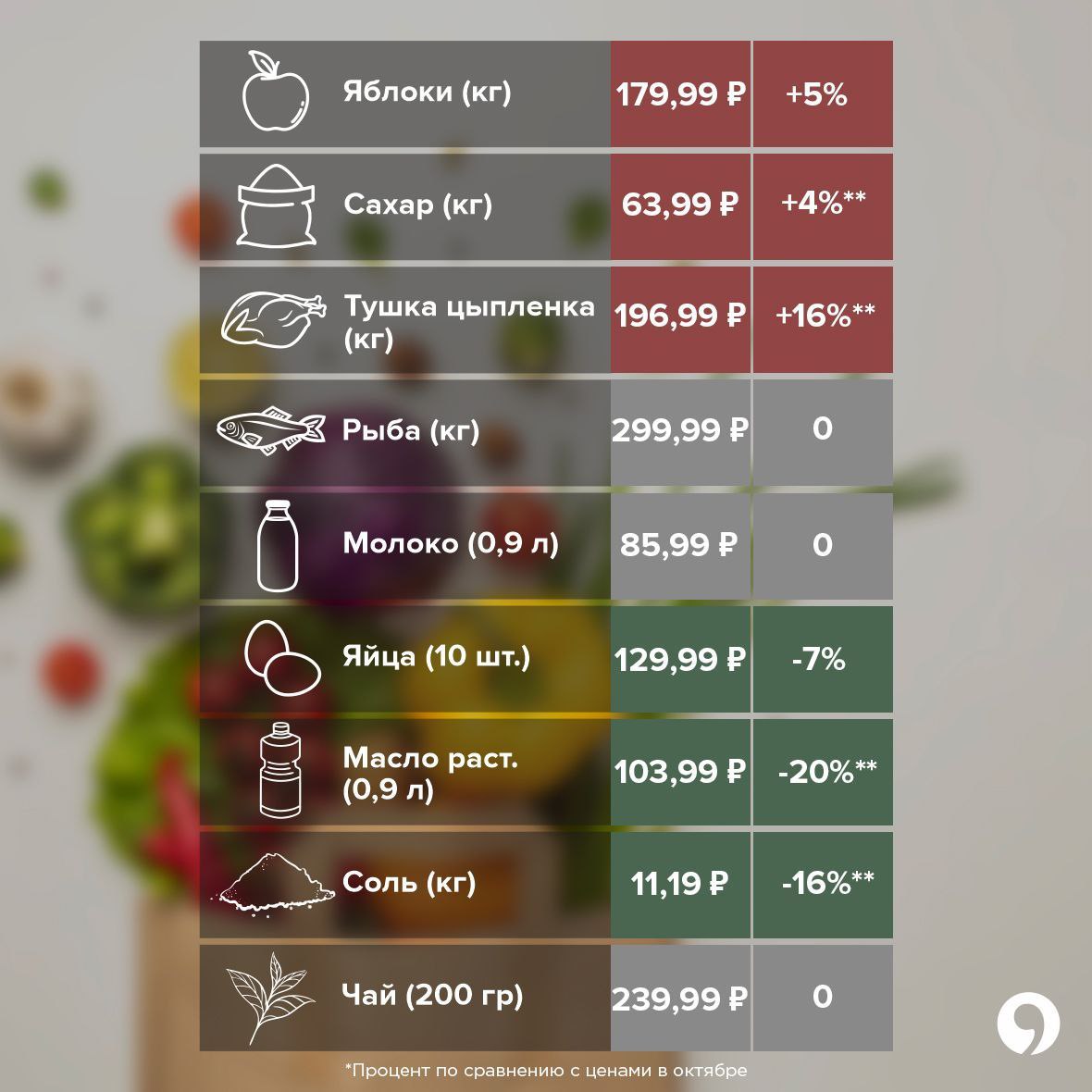 В этом месяце стандартный набор обошелся нам в 1 976 рублей. Это на 183 рубля дороже, чем в октябре.