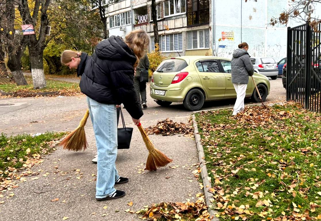 Целью мероприятия была уборка двора и прилегающей территории от опавших листьев и накопившегося мусора.