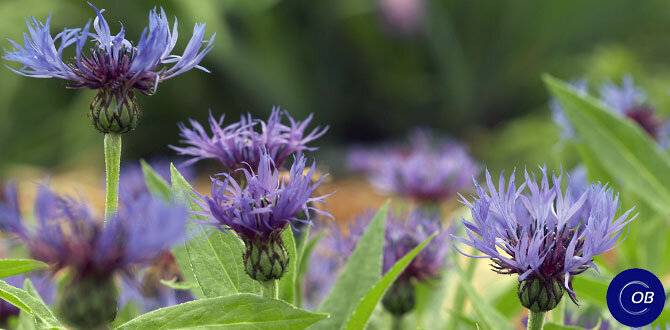 - Синий василек "Centaurea": это красивое растение, обильно цветущее и привлекающее опылителей, быстро заполняет пространство, превращая один куст в целые заросли.
