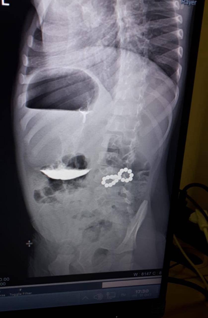 Ребёнок стал жаловаться на кашель. Во время планового рентген-обследования лёгких у ребёнка нашли несколько инородных тел. Магниты, оказавшись в разных петлях кишечника, с огромной силой притягивались друг к другу, сдавливая его стенки. Это могло привести к некрозу, перитониту и тяжелейшим последствиям для жизни.