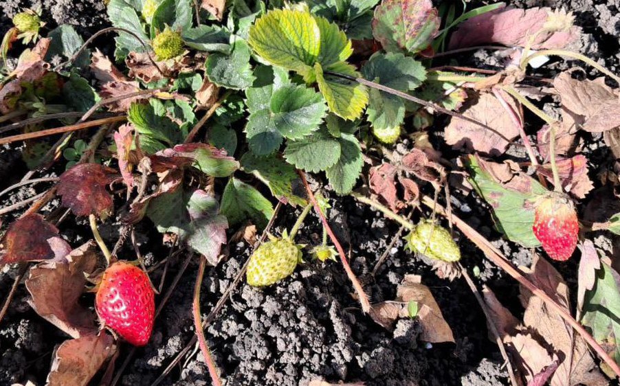 Краснеющие ягоды клубники в ноябре стали приятной неожиданностью. Обычно растение цветет в середине мая. Однако у природы свои планы.