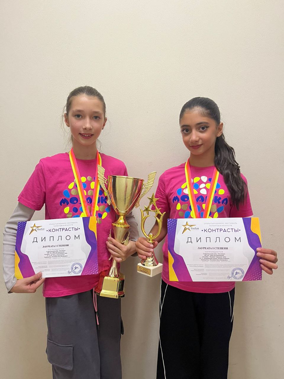 22 ноября в г. Железноводске на Открытом конкурсефестивале «Контрасты» ученицы 5В класса Хачикян Анжелина и Лубенцова Ангелина (ансамбль «Мозаика») показали отличные результаты: обе стали лауреатами Iстепени за танец «Яблочко», Лубенцова Ангелина — лауреат Iстепени за «Полька», Хачикян Анжелина — лауреат Iстепени за сольный номер «Андижанская полька». Также участницы получили номинацию «Красивая номинация» и специальный приз — кубок председателя жюри — за танец «Колесо».