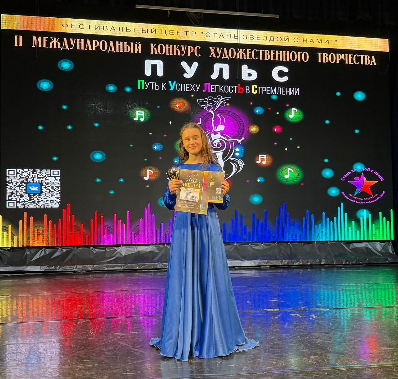 Воспитанница вокальной студии «Классики» ессентукского городского дома культуры София Переславцева завоевала престижную награду на II Международном конкурсе художественного творчества «Пульс», который прошёл в Ставрополе.