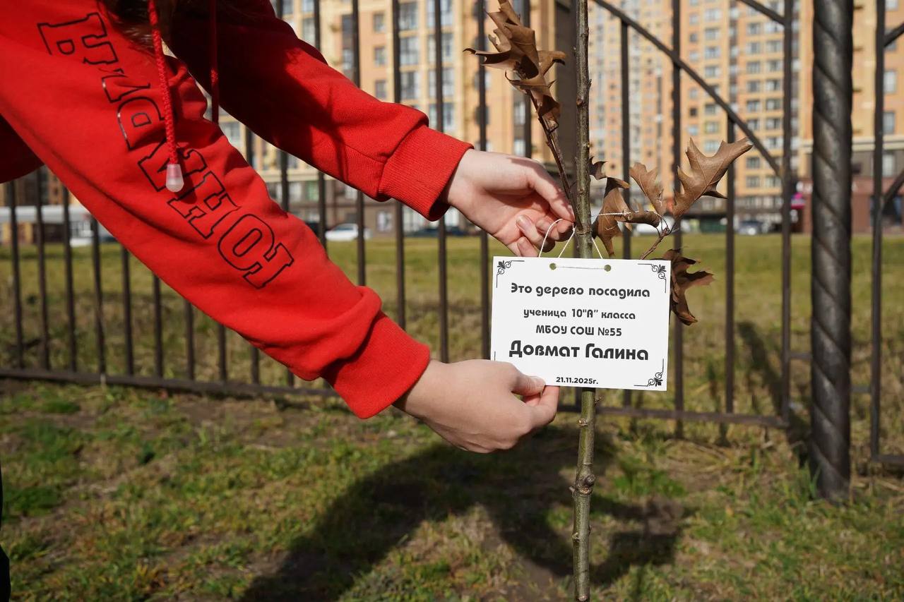 Каждый саженец отмечен табличкой с именем ученика, который его посадил.