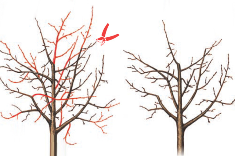 - Ветви, растущие внутрь кроны, создающие затенение и способствующие повышению риска заболеваний.