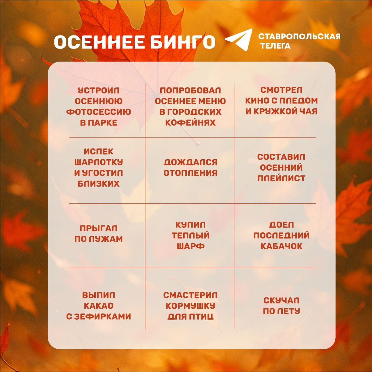 Осеннее «бинго»! До начала зимы осталось всего несколько дней!