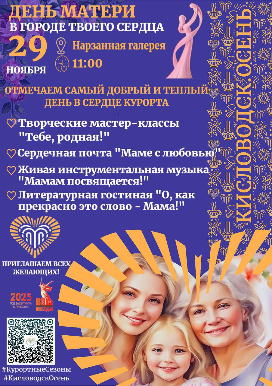 29 ноября приглашаем вас в главную Нарзанную галерею встретить самый добрый и теплый день в самом сердце курорта — День матери!