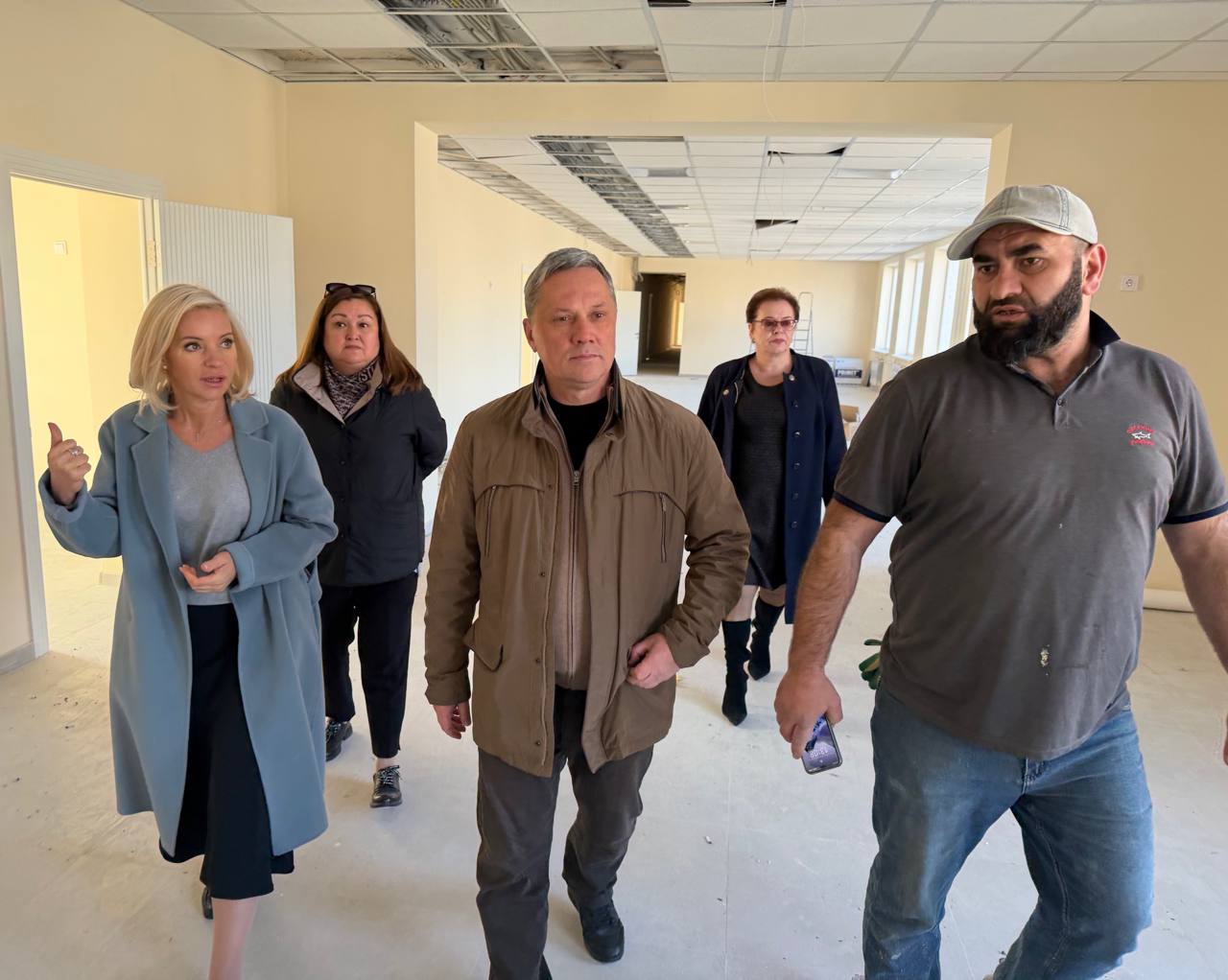 1Внутренние работы в школе N14 близятся к завершению. Сроки поджимают, но подрядчик гарантирует уложиться в график. Проверили эти обещания на объекте. Просчитали по часам и по людям, где на какие работы сколько нужно времени и людей . Вторым этапом в 2026 пойдет облицовка фасада и благоустройство территории.