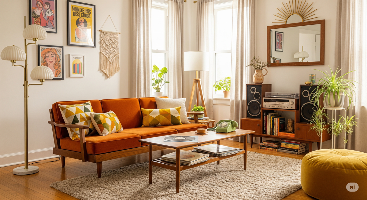 Чтобы преобразить свое жильё в духе ретро, выделите несколько ключевых мест. В гостиной разместите яркие предметы: ретро-диван, винтажный комод с торшером и старый музыкальный центр. Украсьте стены постерами из любимых фильмов или фотографиями в жёлто-серых рамках.