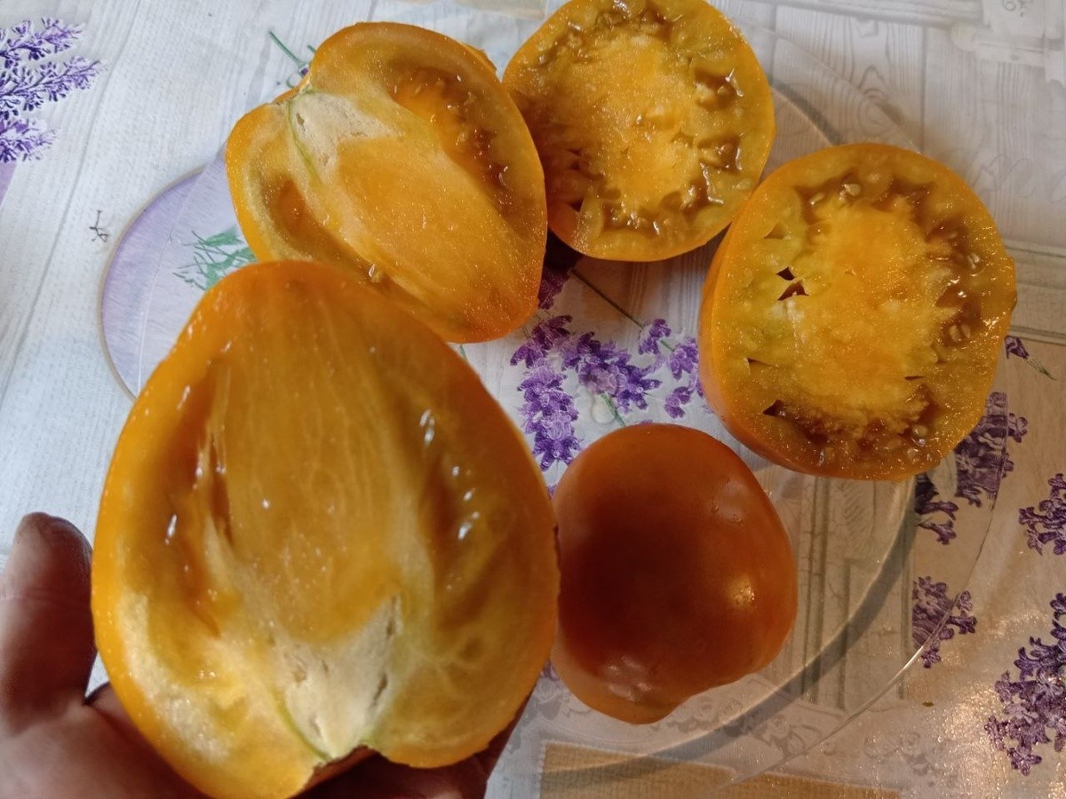 Вкус «Суровой дыни Поволжья» не поддается простому описанию — его можно охарактеризовать как насыщенно-сладкий, с легкими медовыми и дынными нотами. Мякоть абсолютно нежная и маслянистая, просто тает во рту. Эти помидоры идеально подходят не только для свежих салатов, но и могут стать полезным перекусом прямо с грядки.