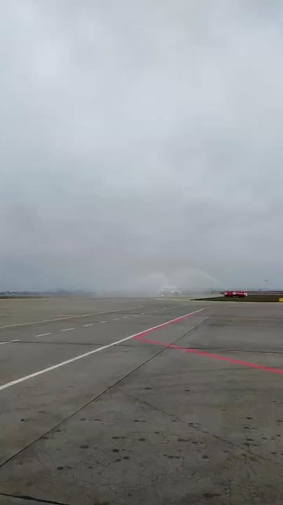 Водяной аркой встретили первый рейс из Душанбе в Минводах.