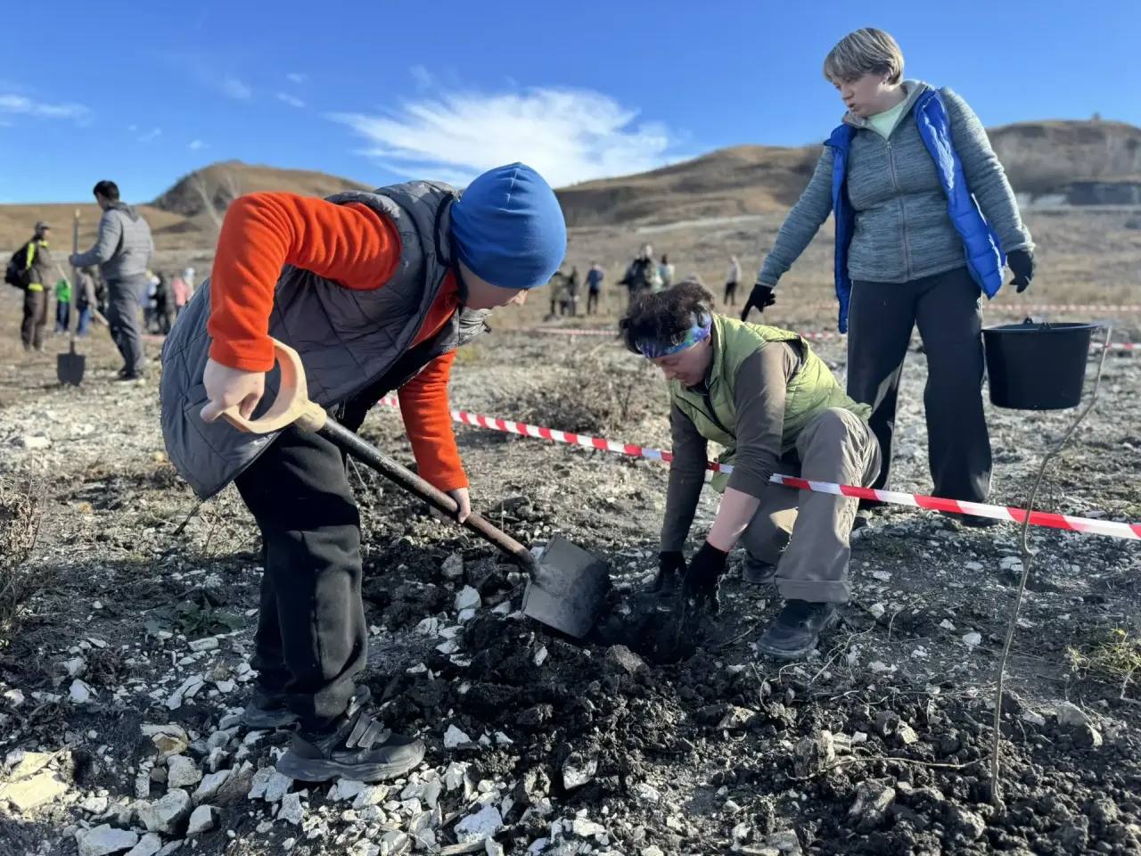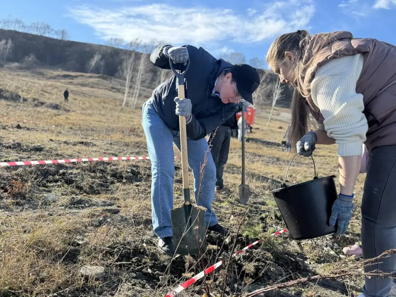 Участники акции высадили саженцы клена, сосны, ясеня и боярышника. Деревья вырастут между вершинами Шульгач и Малое Седло, в двух километрах от национального парка.