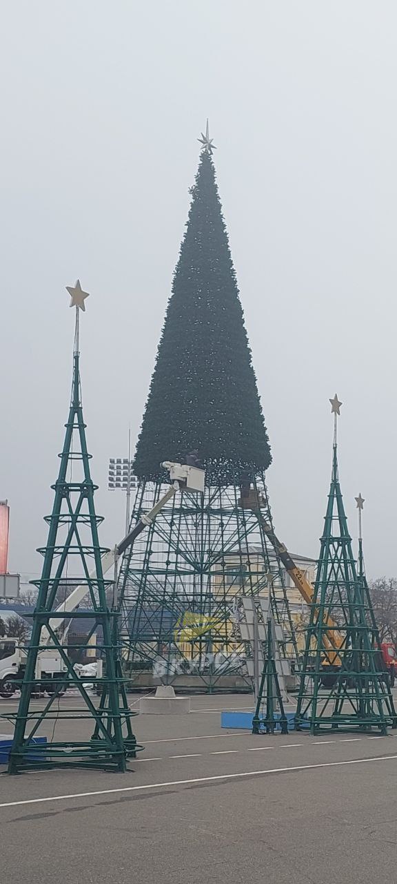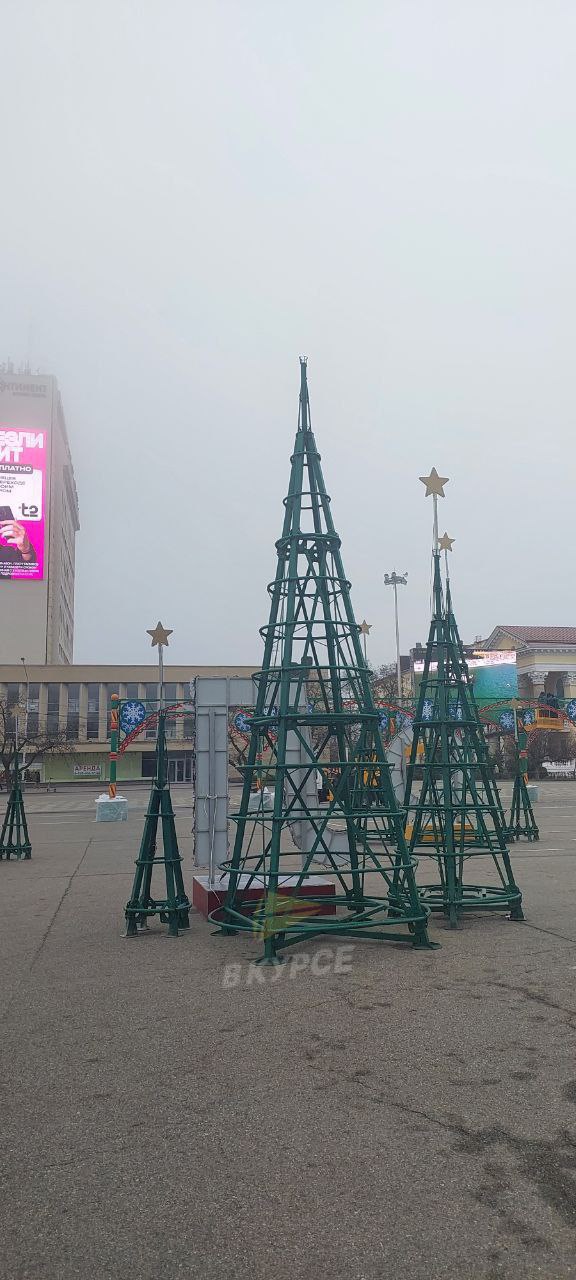 Площадь Ленина уже постепенно преображается, а украшения занимают свои места в центре города.