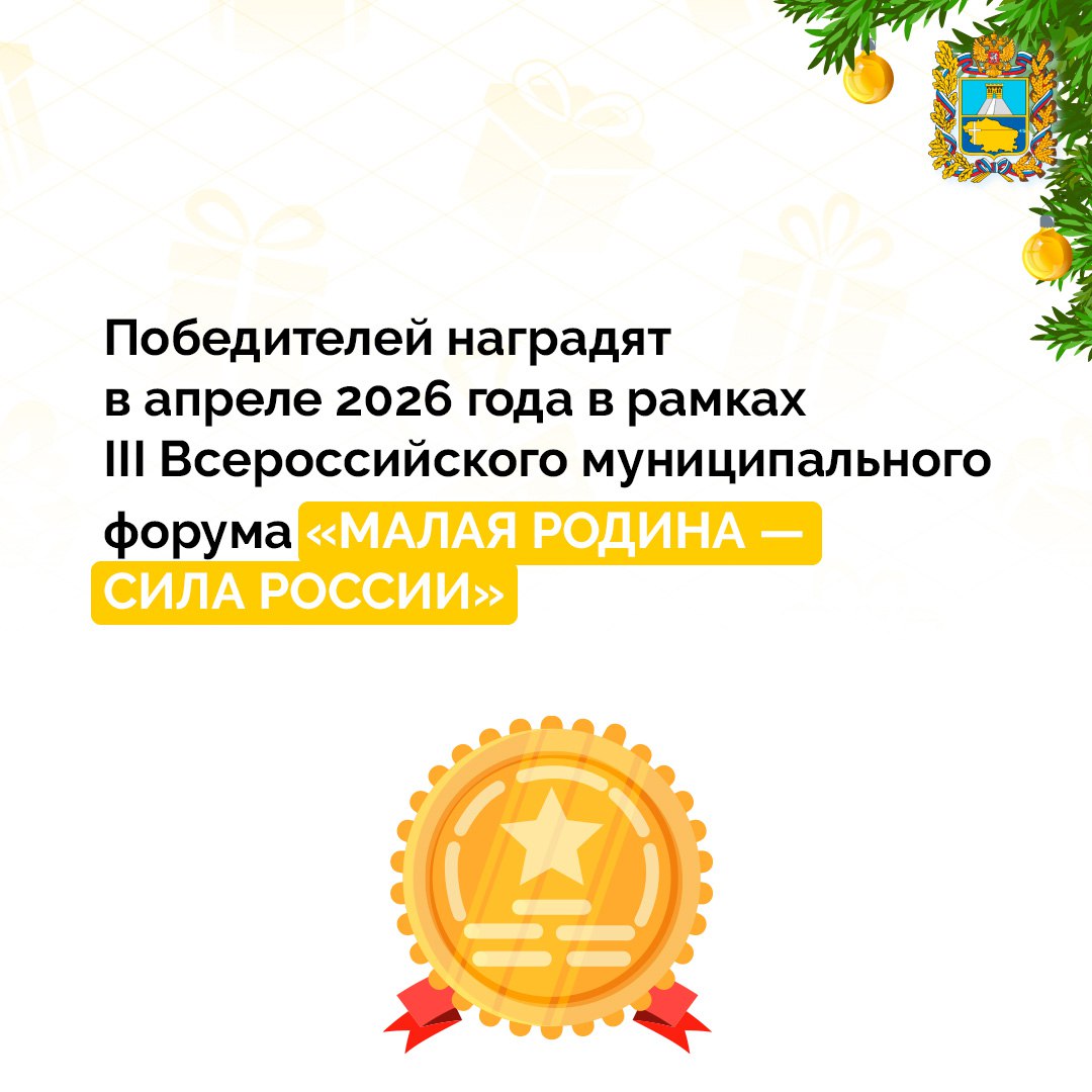 Победителей по всем направлениям наградят на форуме «МАЛАЯ РОДИНА — СИЛА РОССИИ» в апреле 2026 года.