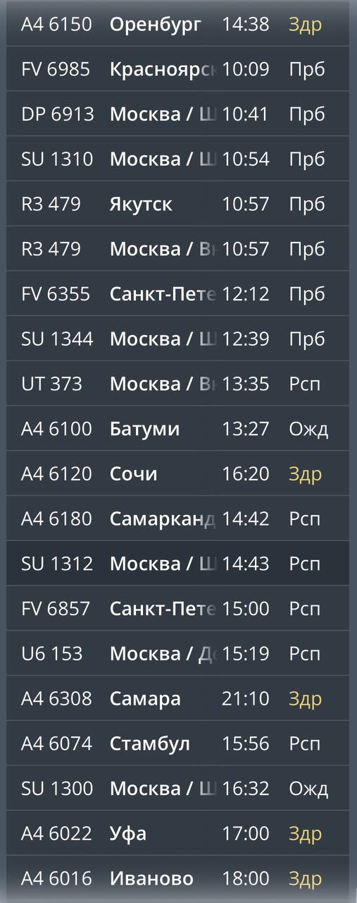 Пока, судя по табло, в аэропорту задерживаются 5 рейсов на прилёт.