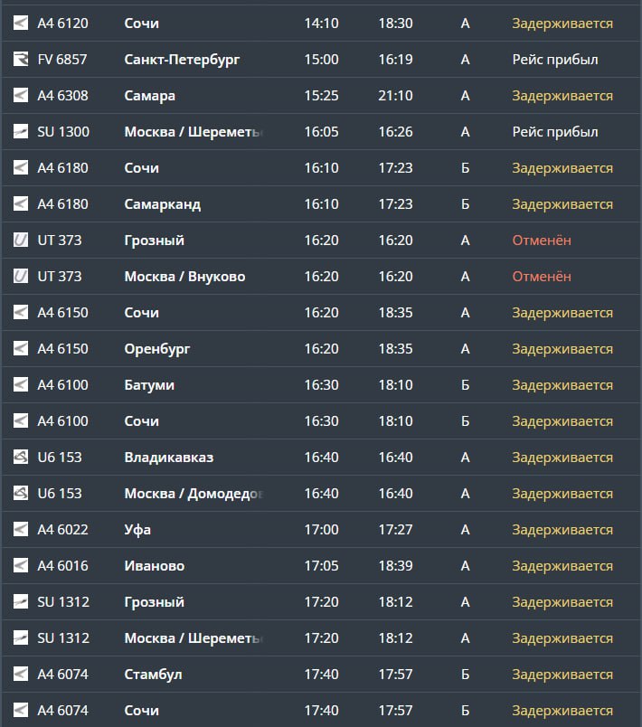 Еще один московский рейс (Домодедово) отменен на вылет, следует из онлайн-табло аэропорта.