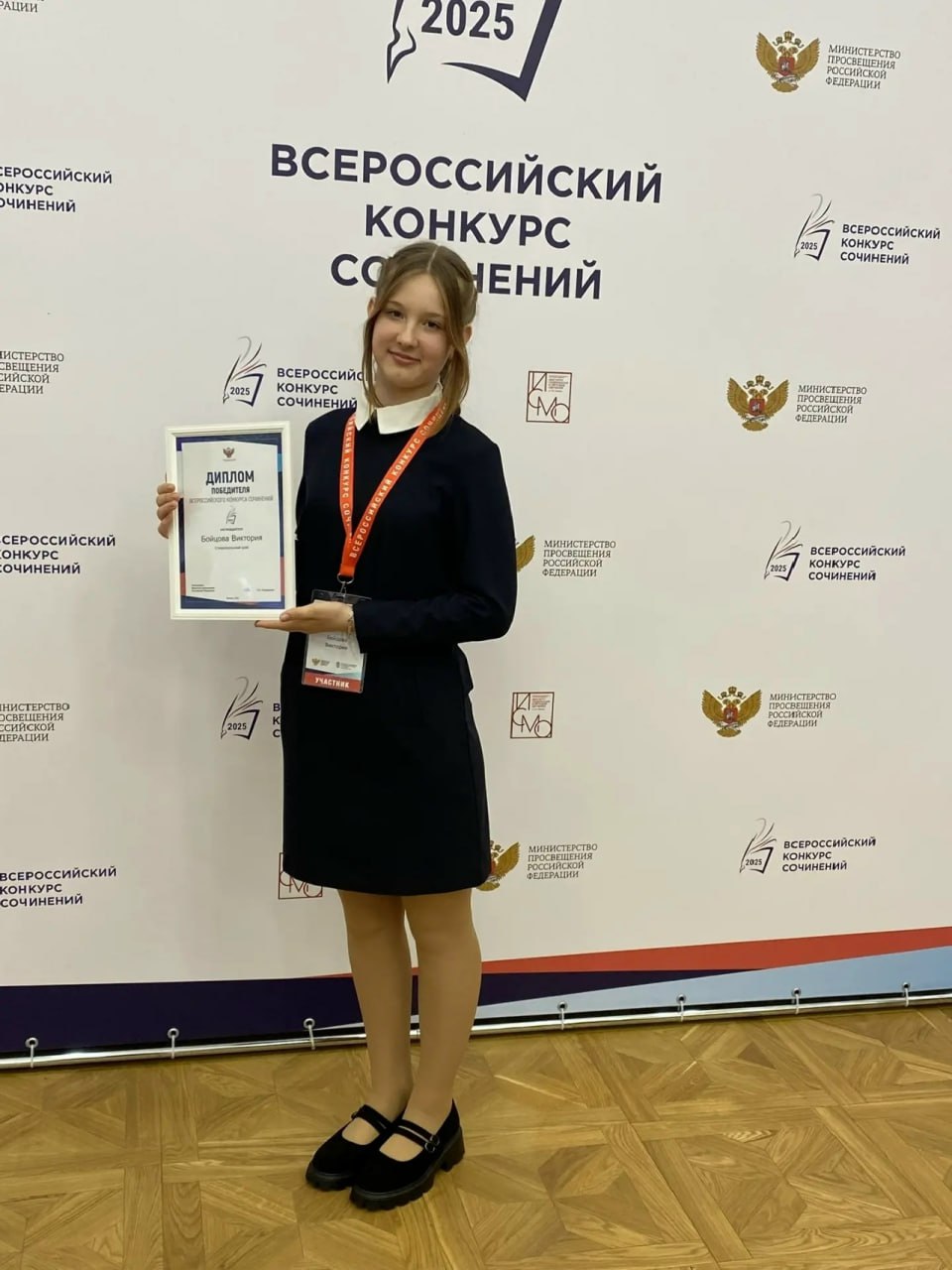 Эссе было посвящено 125-летию знаменитого лингвиста Сергея Ожегова. Виктория блестяще использовала старорусские слова, описывая каникулы в деревне. Жюри высоко оценило оригинальность, глубину и мастерство текста.