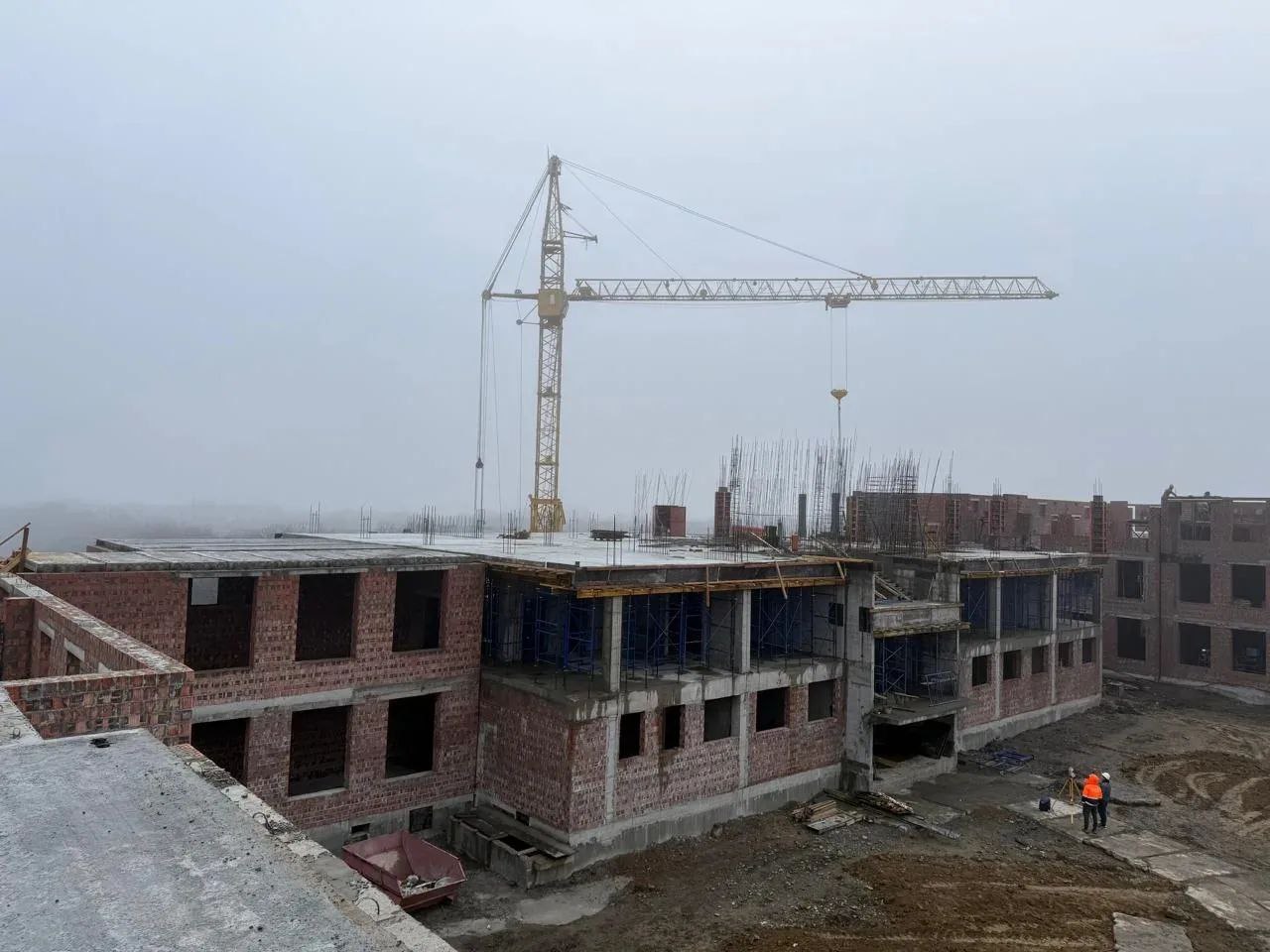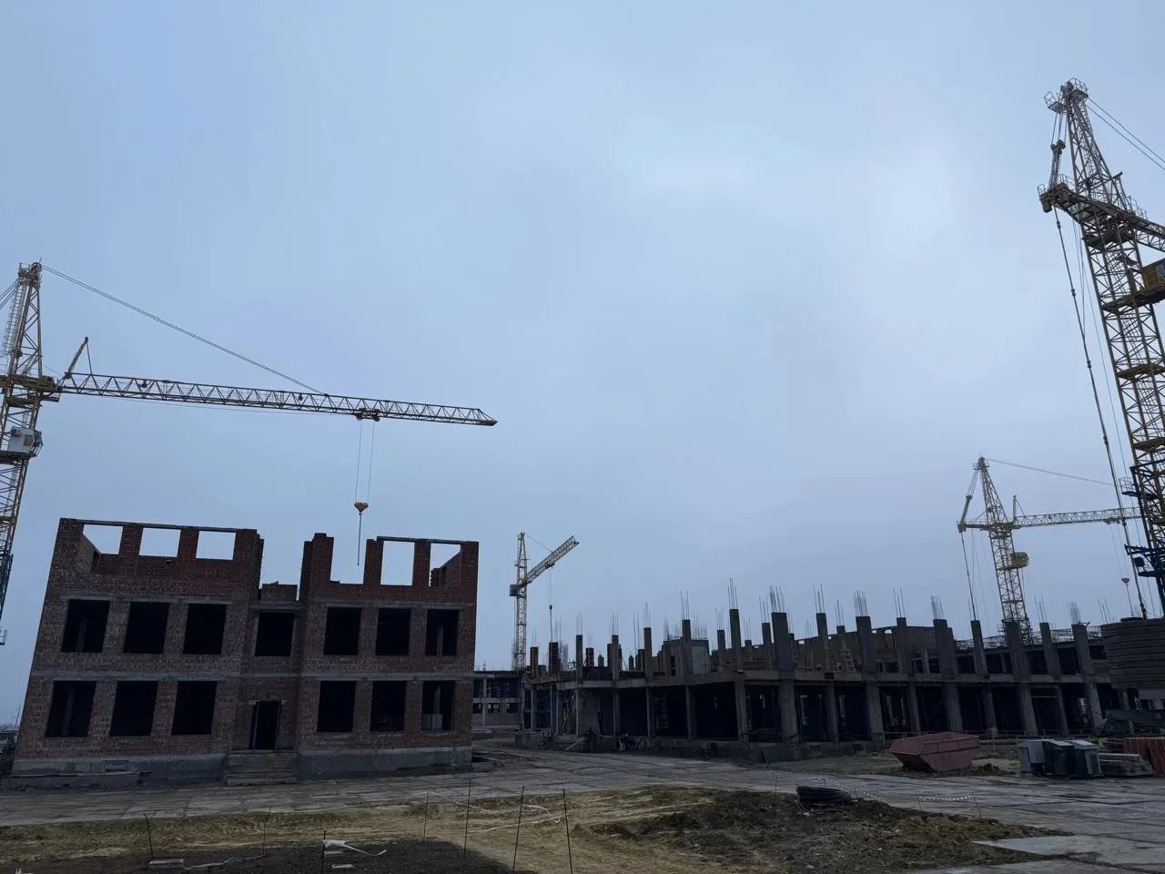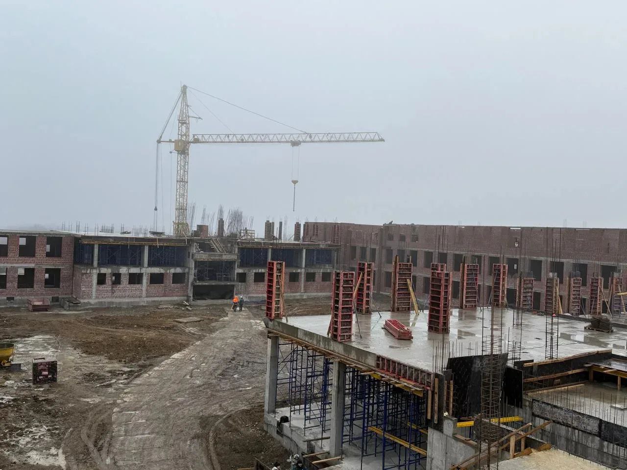 Продолжаем строительство школы на 1550 мест по улице Андрея Голуба. Сейчас специалисты занимаются устройством железо-бетонного каркаса трехэтажного здания, кладкой наружных стен и перегородок. Параллельно приступили к наружной прокладке сетей водоснабжения и канализации.