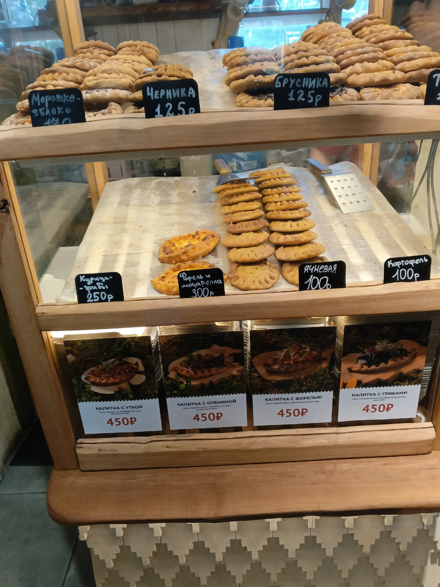 Посетители могут насладиться разнообразием местных блюд, особенно знаменитых калиток — карельских пирожков с множеством начинок. Будь-то с олениной, лососем или традиционной картошкой, эти кулинарные шедевры привлекают внимание каждого.