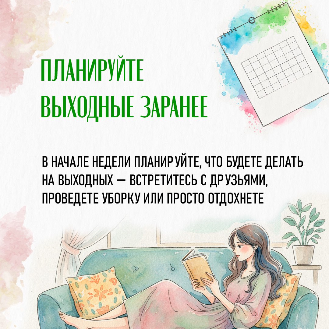 Как выделять время на личную жизнь и успевать отдыхать — рассказываем в карточках